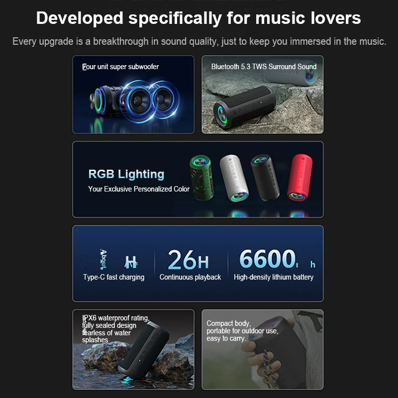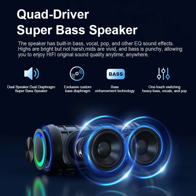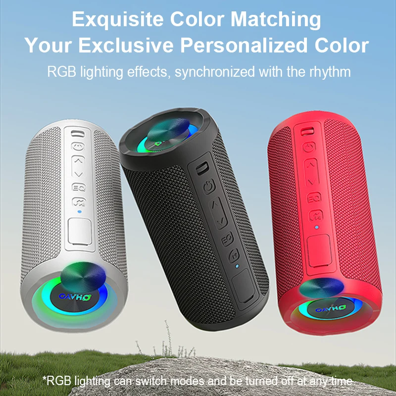 Portable Bluetooth Speaker 24W IPX6 Waterproof Outdoor Sports Camping Wireless Speaker Bass Boost BT5.3 RGB Light Speaker